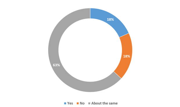 There were 76 respondents to the survey, and while the majority were from larger organisations, of those some 4 out of 10 were from companies of 1,000 or more. Just over a third (37%) were from smaller companies up to 100 people. In terms of sector, it was perhaps no surprise that half of respondents were from the technology sector, followed by government (17%), production/manufacturing and healthcare were both on 9%, media on 6%,retail on 4%, with others below this.